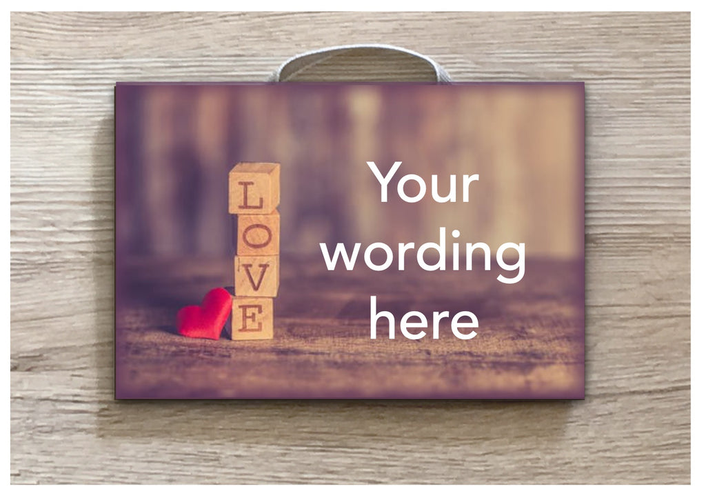 Build the love with our building brick sign. Our custom-made plaque comes in either wood or metal and with the text of your choice. Fill the wording you would like in the text box above and we will do the rest.