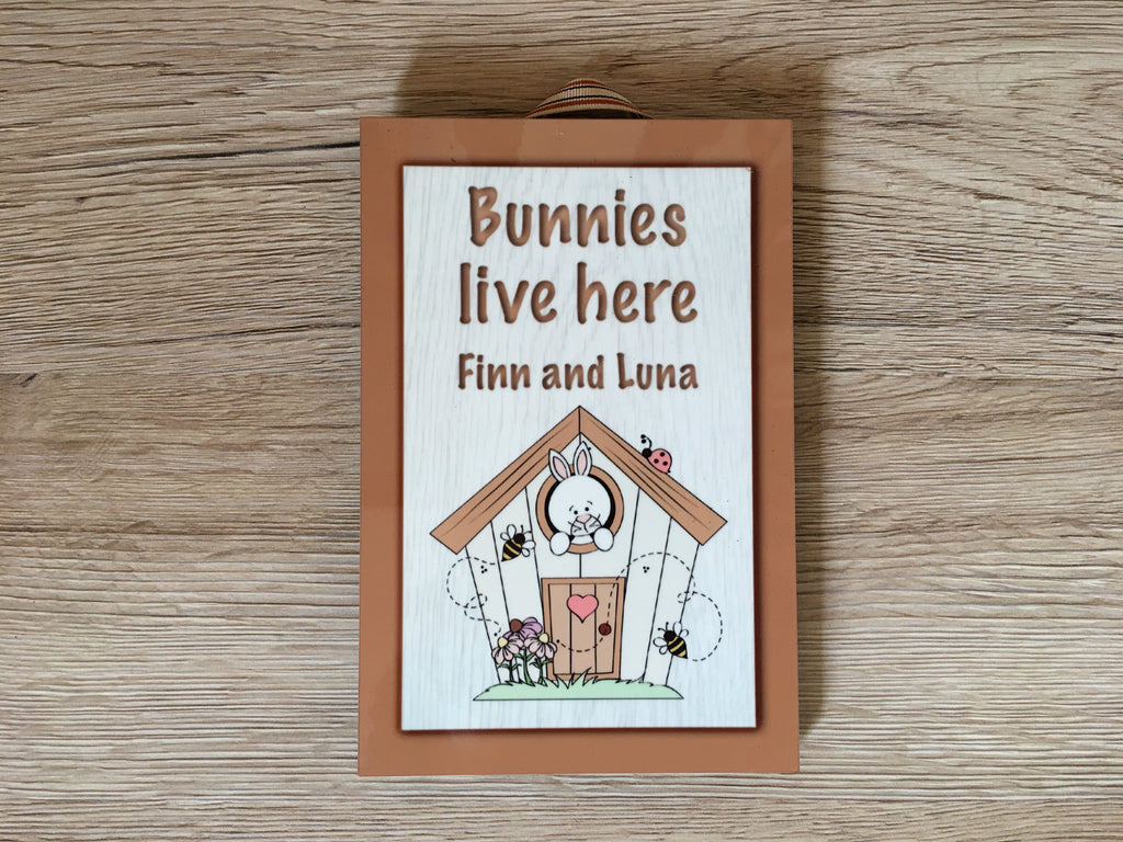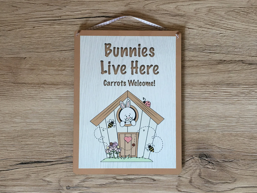 For those who need some bunny to love, we've a cute sign for your rabbits. The default text is: 'Bunnies Live Here. Carrots Welcome!' Keep this wording or change it by adding your own text in the box above.