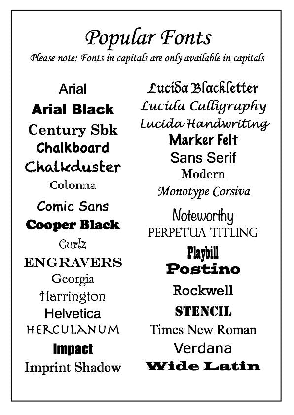 Write your choice of wording in the blank boxes on this page before adding the product to your shopping cart. If you want a different font, select one from the list in the picture. If you want more than one sign with different text or attachments, add them individually, otherwise all the signs will be done the same.