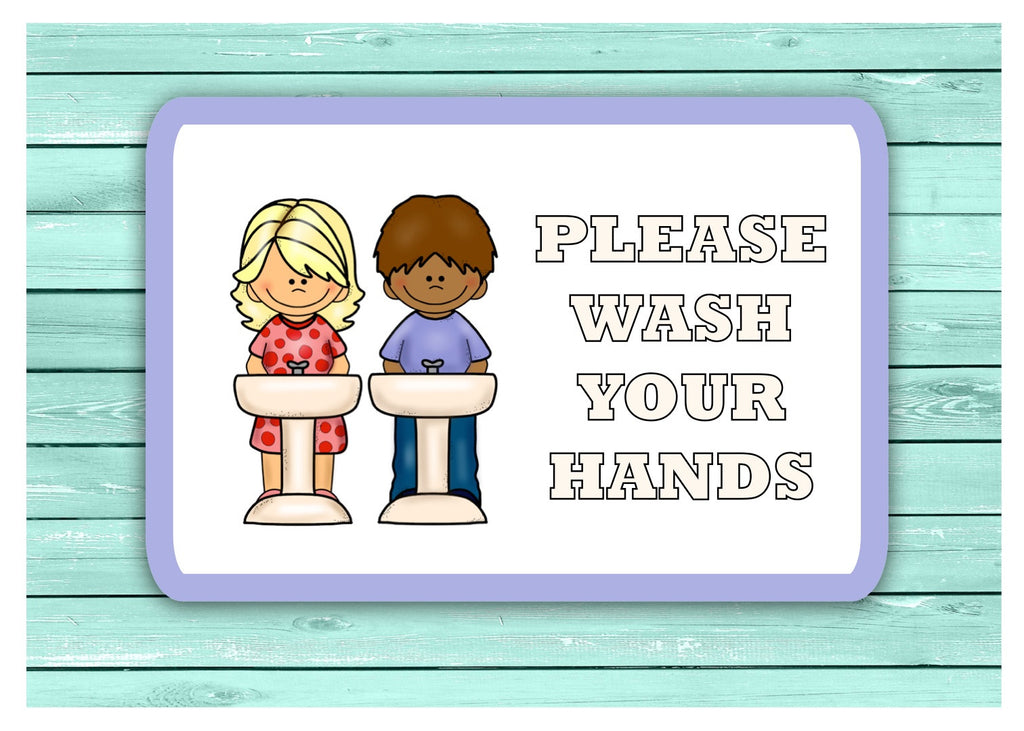 Please Wash Your Hands Metal Sign in Gold, Silver or White: Child Design