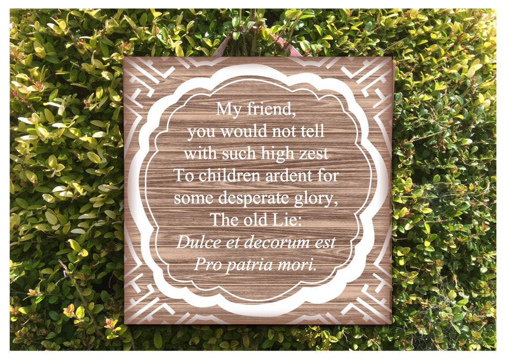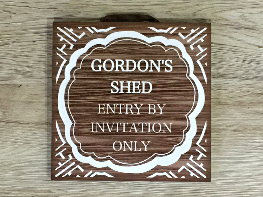 WOOD SIGN - The thicker and heavier wood sign is made of dark brown HDF with a glossy front showing the colourful design and square corners.