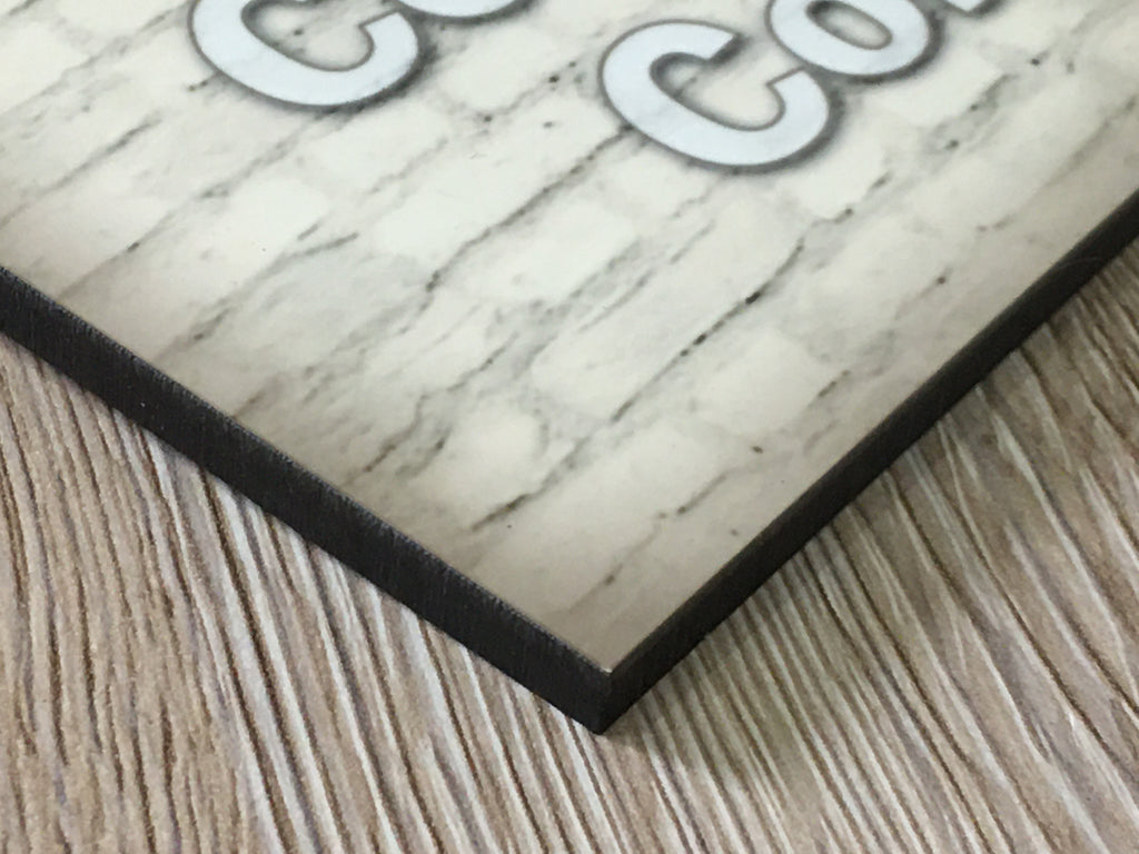 The metal sign is 15x10cm / 6" x 4" and 0.5mm thick with rounded corners. The HDF wood sign is 15x10x0.5cm / 6" x 4'' with square corners.