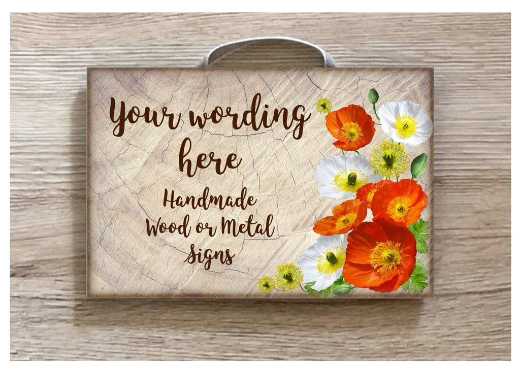 Custom-made Poppy Blank Sign in Wood or Metal with Your Wording