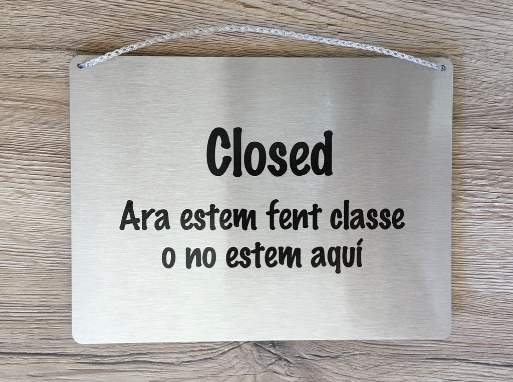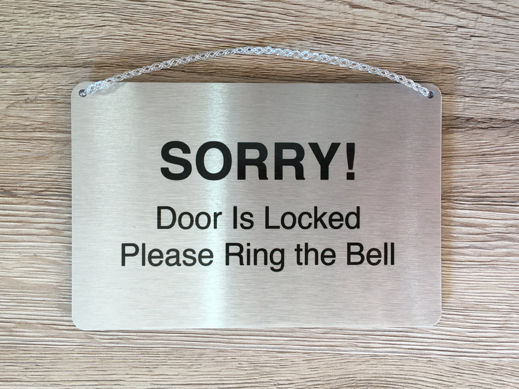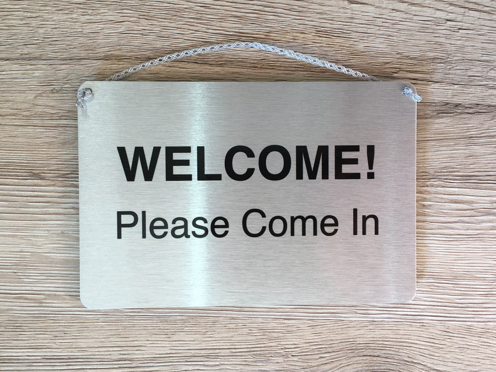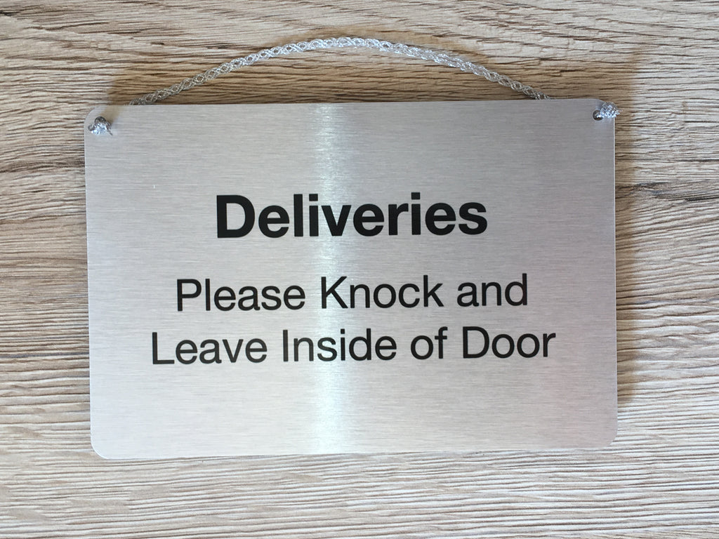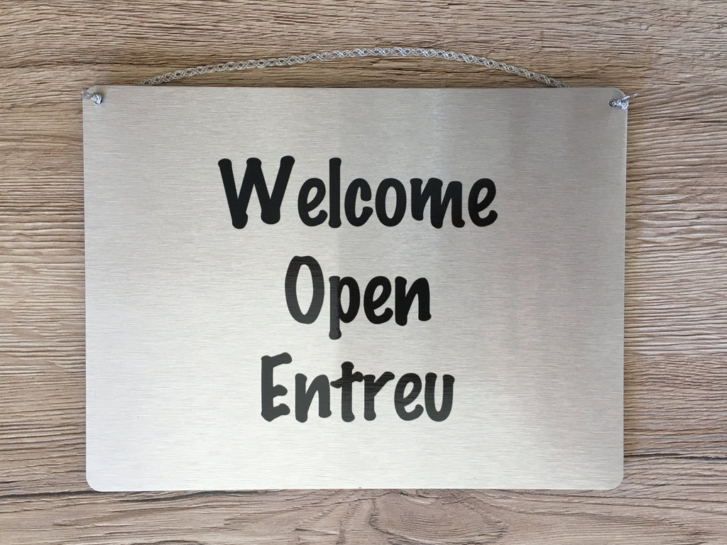 Get rid of old or paper signs and replace with one of our brushed silver, brushed gold or white aluminium signs. The sign will be the same colour metal both sides unless you request otherwise.
