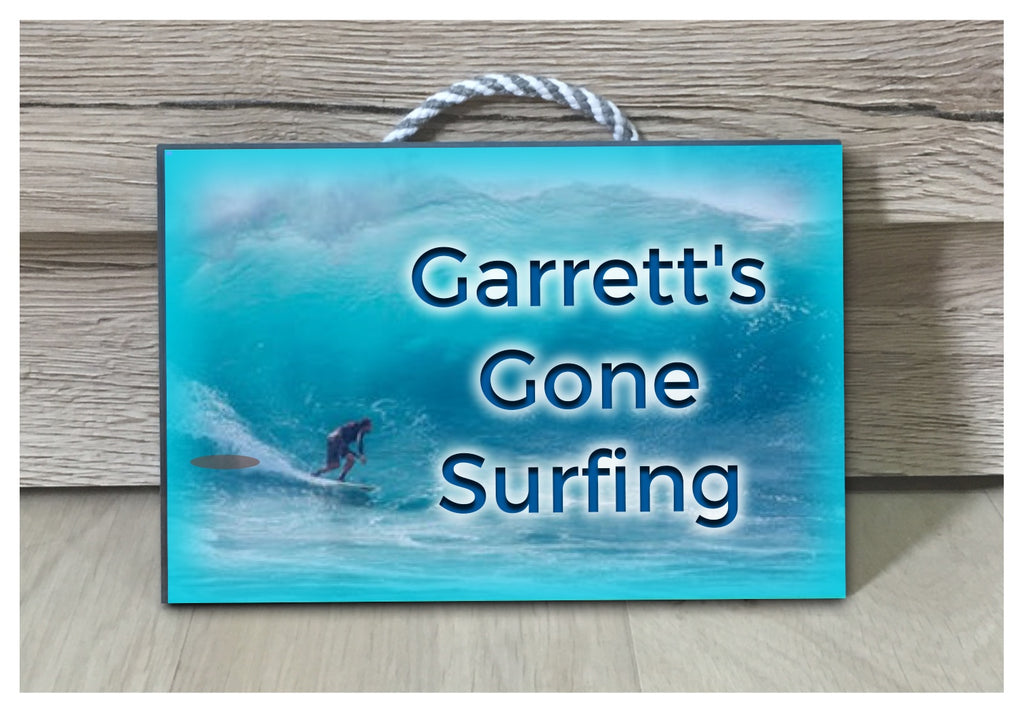 Gone Surfing or Own Text Sign: Add Wording or Name to Custom-Made Personalised Wood or Metal Plaque