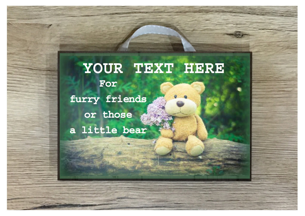 Add Your Text to Bear Sign: Custom-Made Personalised Wood or Metal Plaque