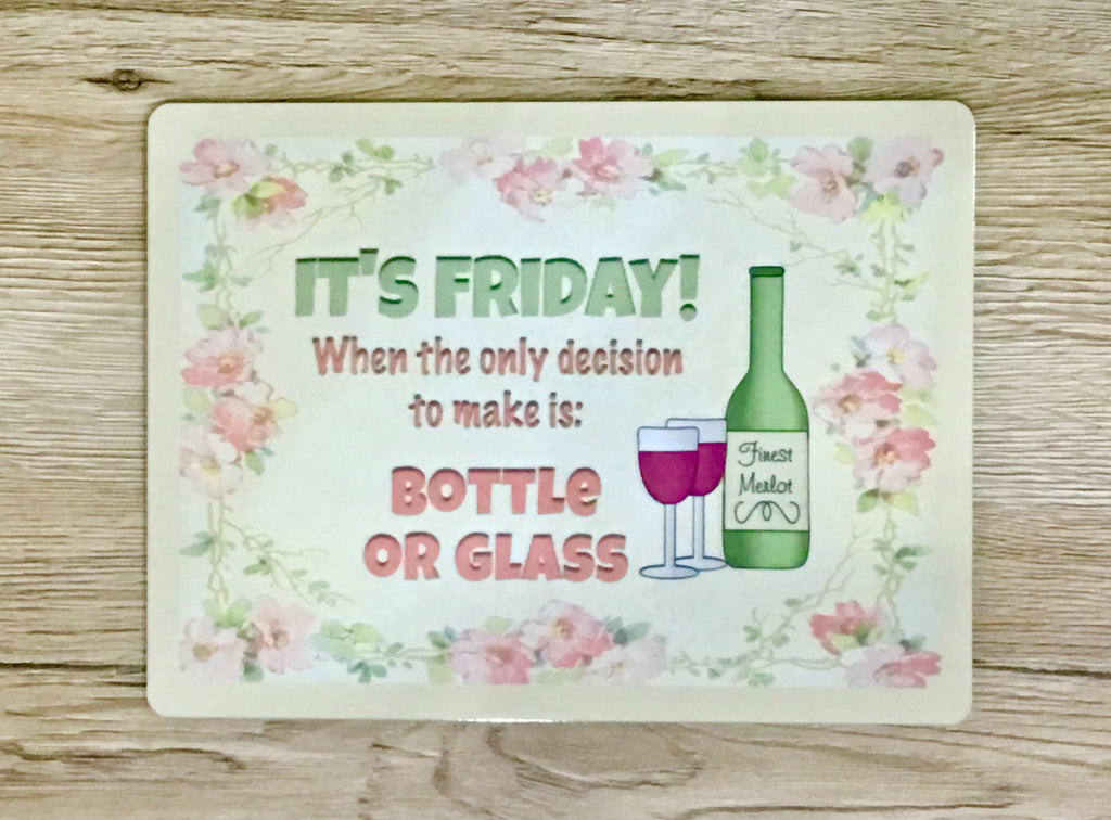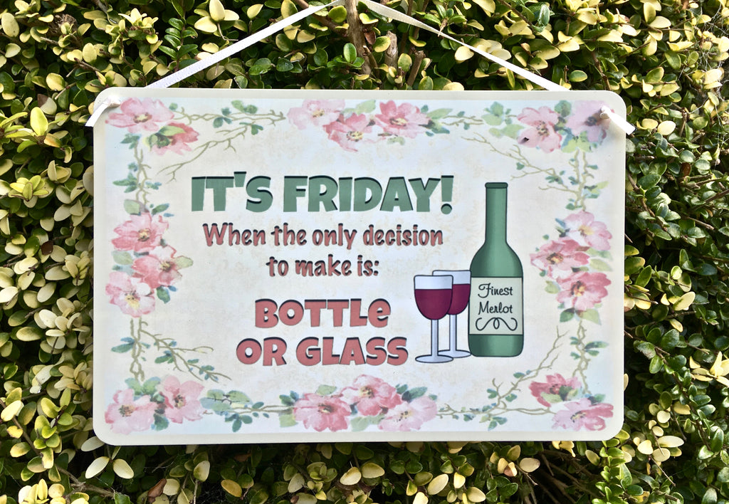 'IT'S FRIDAY: Bottle or Glass' Rustic Metal or Wood Sign