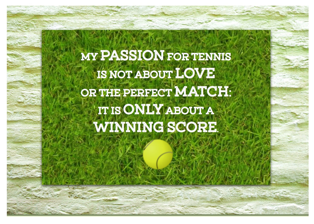 Add inspiration to your day with our tennis themed sign. The plaque reads: 'My love for tennis is not about love or the perfect match: it is about a winning score'. Made of light aluminium, it comes with a choice of attachments: sticky pads, hanging ribbon or fridge magnet.