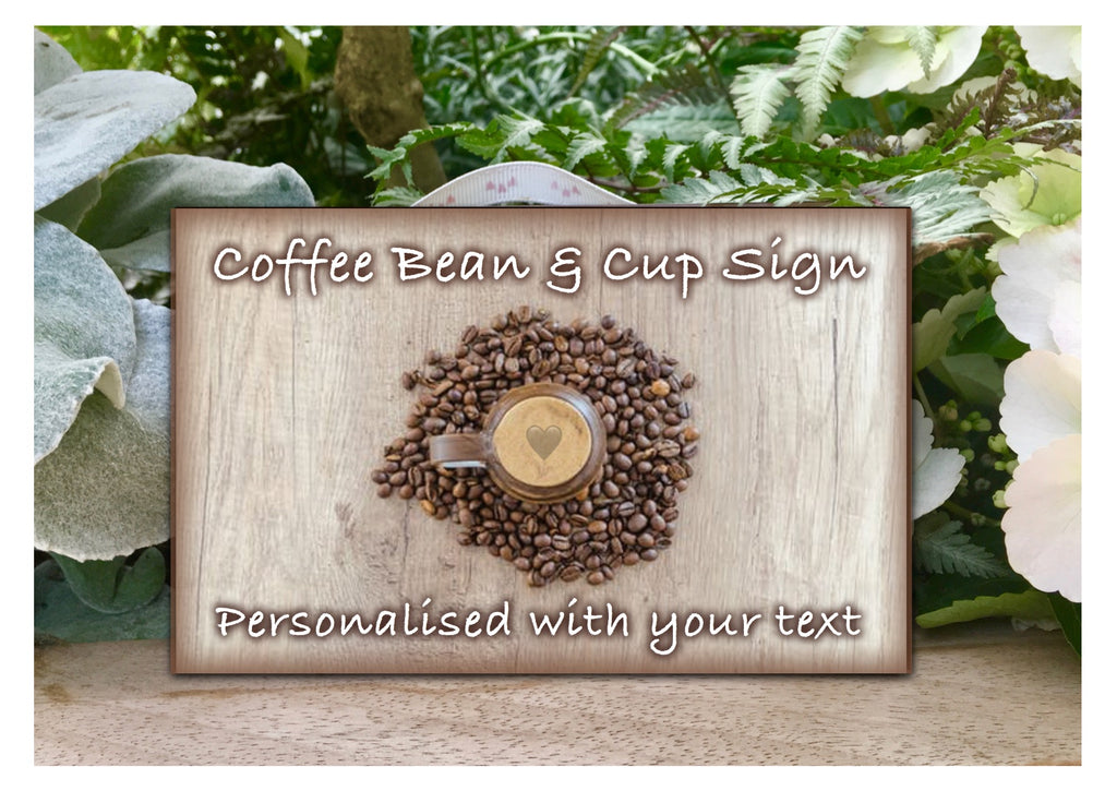 Coffee Cup Personalised Sign in Wood or Metal: Add text, quote or message