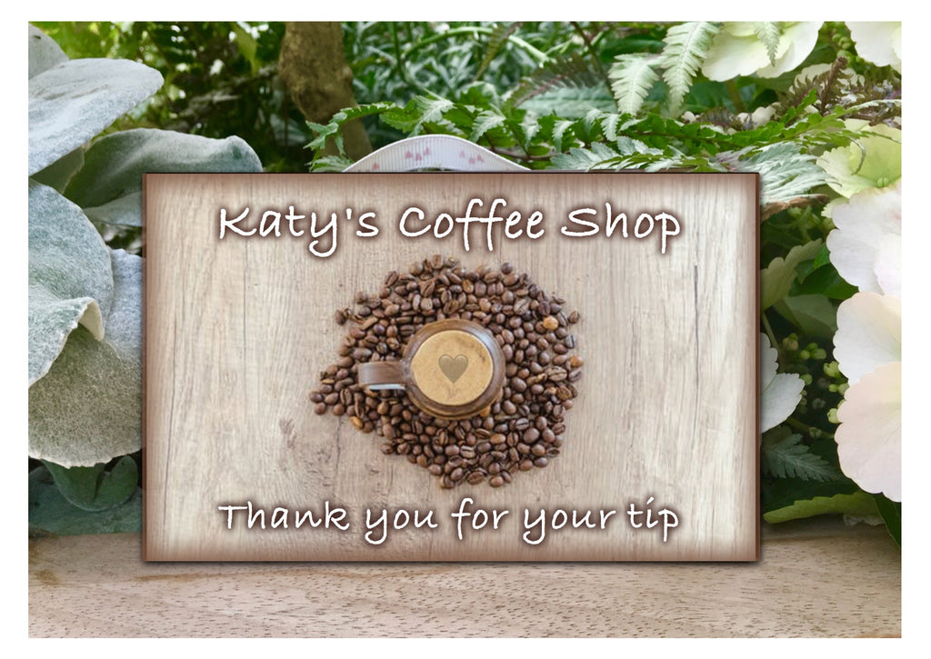 Our custom-made coffee plaque with a wood effect design comes in either wood or metal and with the text of your choice. Fill the wording you would like in the text box above and we will do the rest.