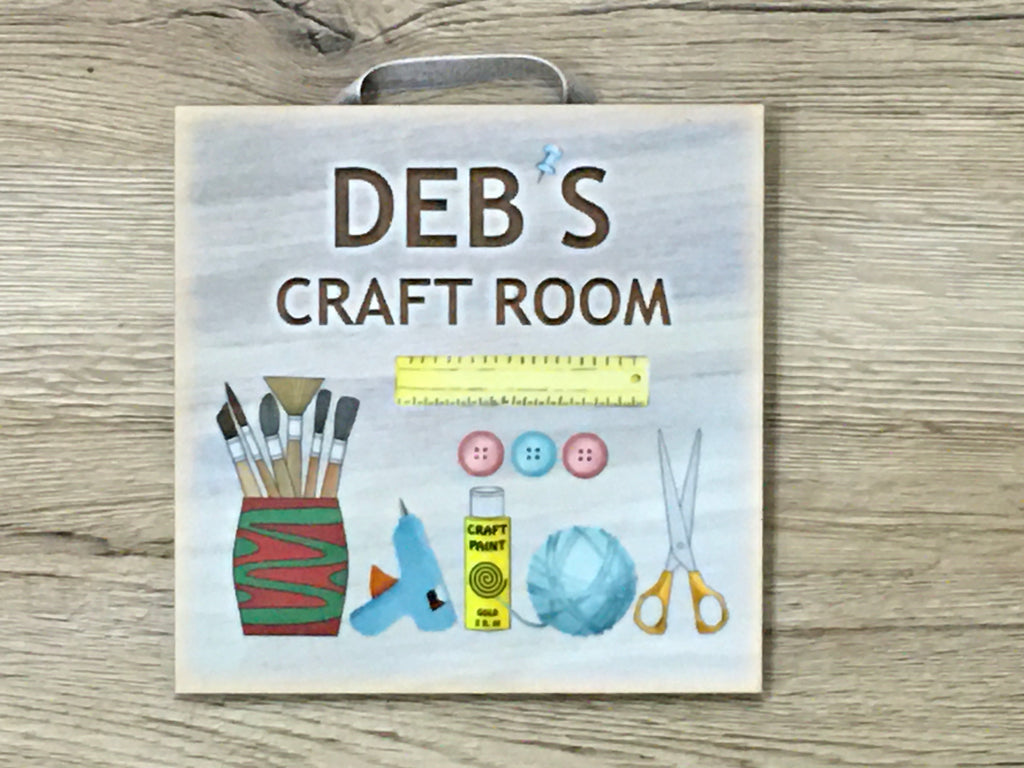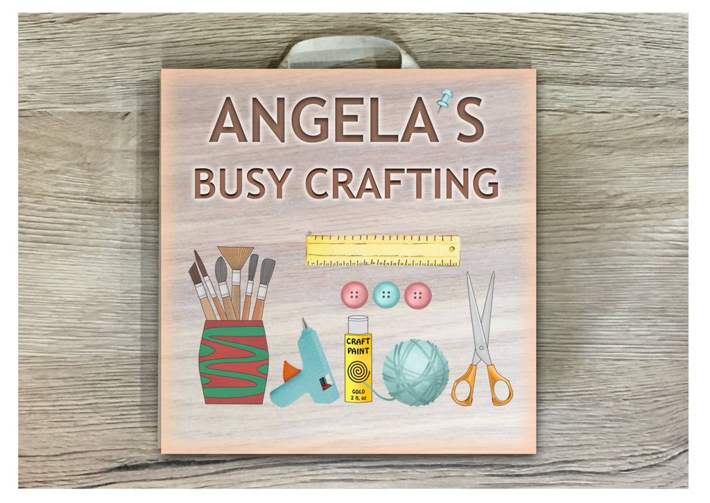 A personalised metal or wood sign for busy crafters or artists. Just let us know the text you want to appear on your plaque in the text box above. We have included pictures with some ideas for your sign or change the text entirely. If you want more than one sign with different text add them individually to your basket, otherwise all the signs will be done the same.