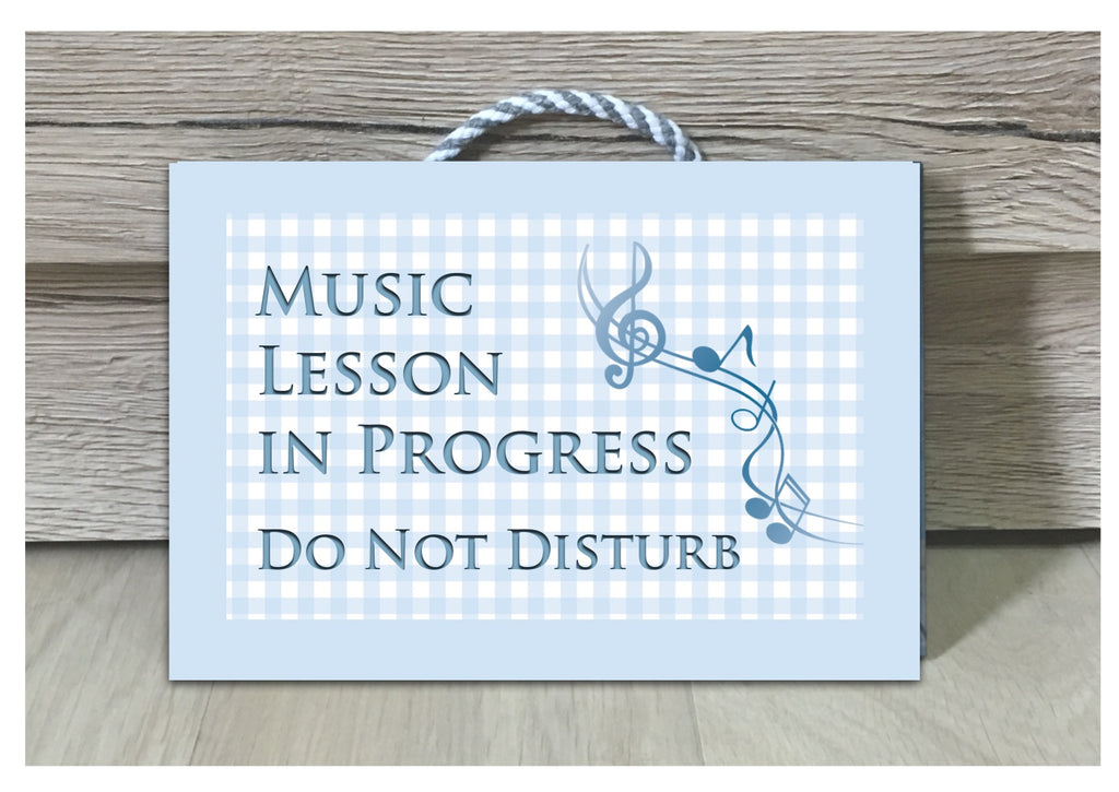 Our blue sign is perfect for those who want some quiet whilst a lesson is in progress or simply when they are practising. Made of aluminium or HDF wood with a glossy finish it is a lightweight, colourful addition to set the tone for your room whether you stick or hang to your door.