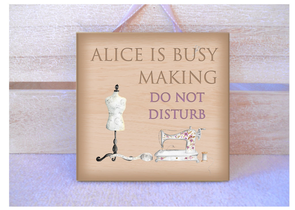 A personalised metal or wood sign for busy crafters. Just let us know the text you want in the text box above. We have included pictures with some ideas for your sign or change the text entirely. If you want more than one sign with different text add them individually to your basket, otherwise all the signs will be done the same.