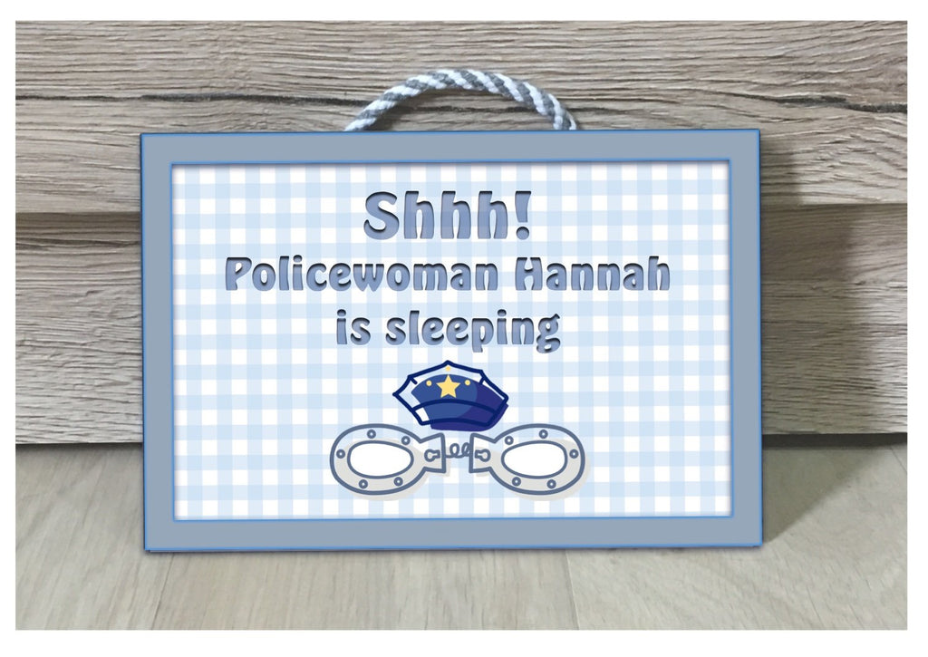 Sleeping Policeman / Policewoman Hanging Metal or Wood Sign: Add Own Text to Personalise