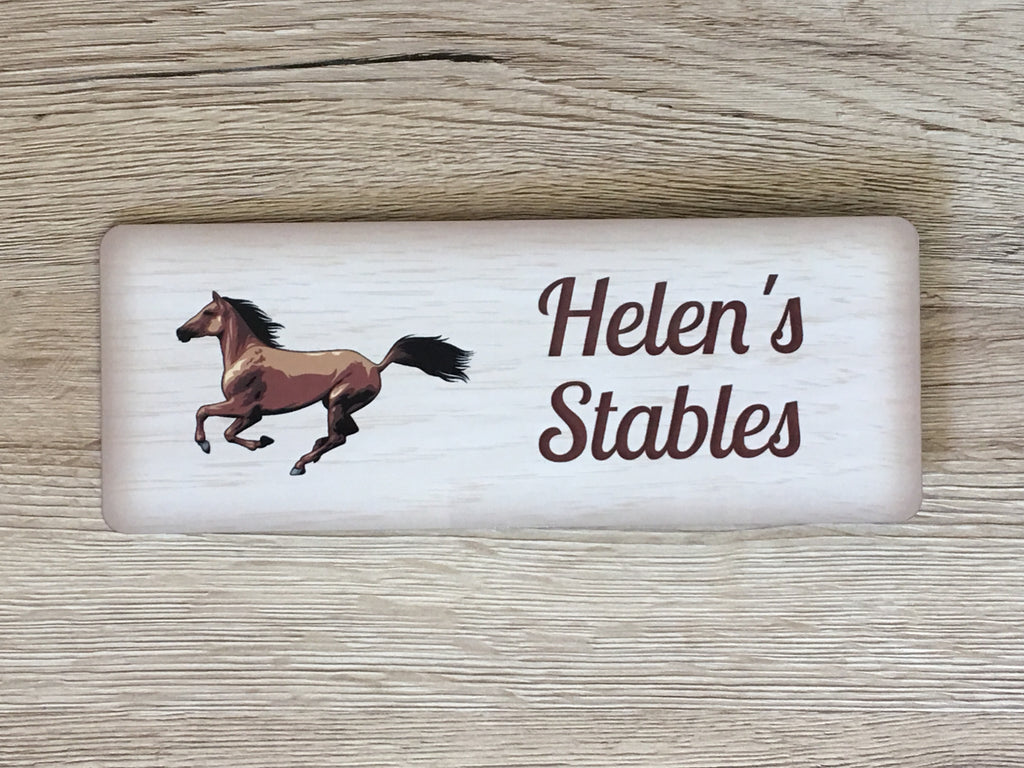 Horse Wood Effect Sign Personalised Metal Stables Plaque