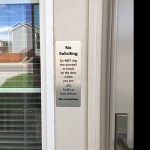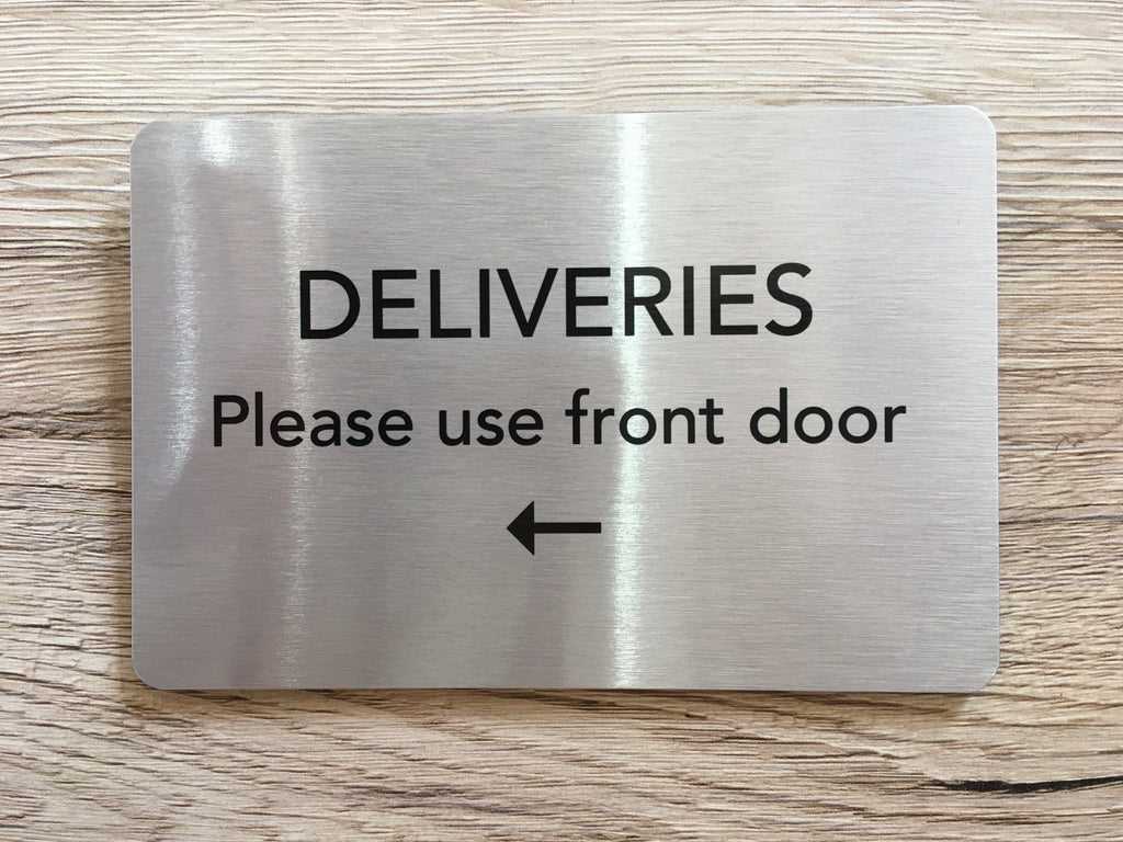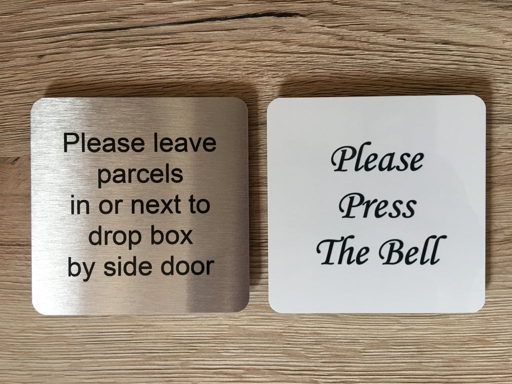 These signs can be used for any message that you need to have displayed. This can include anything from instructions for the postal deliveries, naming rooms such as offices, bathrooms and bedrooms; places for pets, messages to a loved one or a polite request for guests.