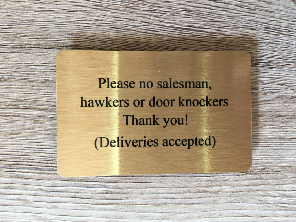 All signs are approximately 0.7mm thick and have rounded corners. To keep the colour in your sign at its best, try to avoid placing it in direct sun for long periods.
