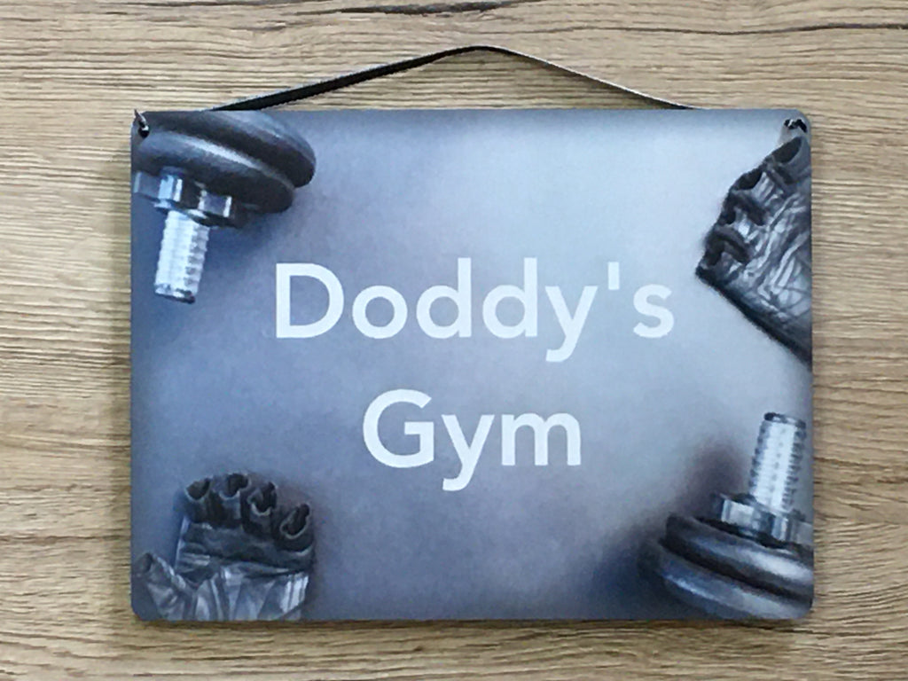 Leave a colourful message with this hanging plaque. Made of light aluminium or HDF wood, it is a fun way to leave a message to the rest of your household, include a motivational quotation or name for your own home gym.